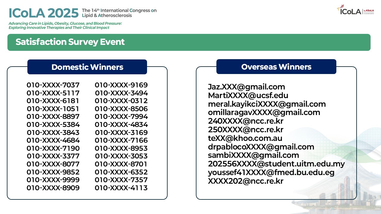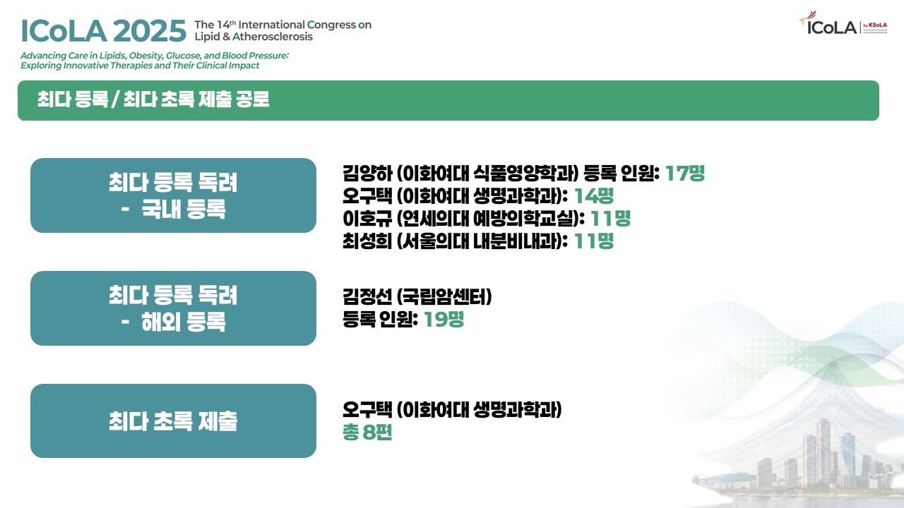 [ICoLA 2025] Event Results (Photogenic / Satisfaction Survey / SNS / 최다 등록 & 초록 공로)